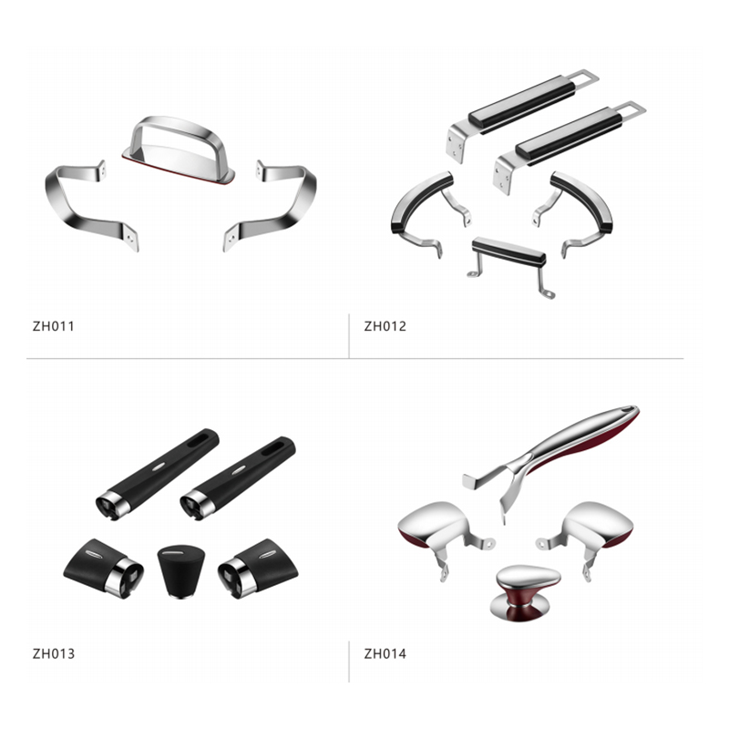 Accessories characterized by distinct design aesthetics, premium-grade materials, and sophisticated manufacturing techniques play a pivotal role in elevating the overall quality of cookware products. We have forged and sustained long-standing, mutually beneficial partnerships with a diversified network of cookware accessory suppliers. These collaborative partners supply us with a comprehensive portfolio of components—including main handles, carrying handles, lid knobs, and lid handles—crafted from an array of high-performance materials (such as food-grade stainless steel, heat-resistant bakelite, and food-contact silica gel) and manufactured via advanced processing technologies (encompassing casting & pressing, precision injection molding, and Physical Vapor Deposition/PVD). Subsequent to your product selection, you may leverage this platform to freely configure accessories in line with your preferences.