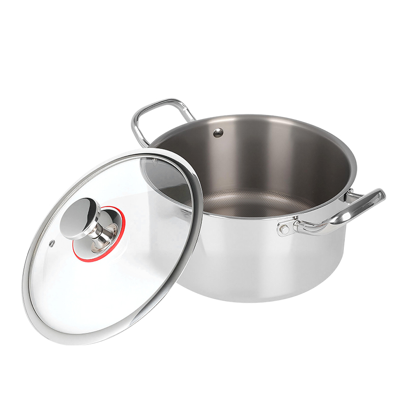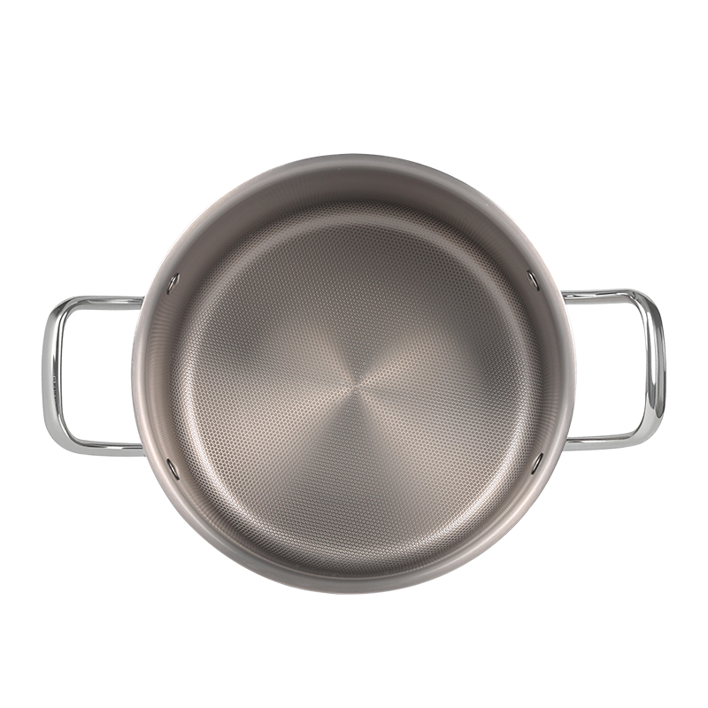 2. What specific advantages does it offer? Firstly, the fine thermal conductivity of the 3-layer stainless steel material is perfectly combined with the uniform heat distribution of the etched honeycomb coating, allowing for a more hassle-free cooking experience. Secondly, the non-stick property of the etched honeycomb coating merges seamlessly with the completely fluorine-free nature of the titanium plasma coating, ensuring the product meets the highest standards for health and non-toxicity.