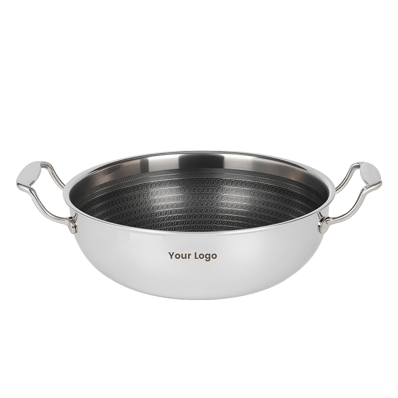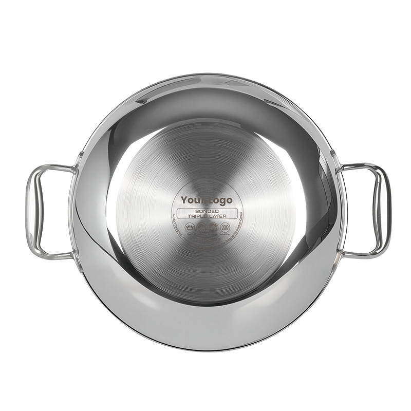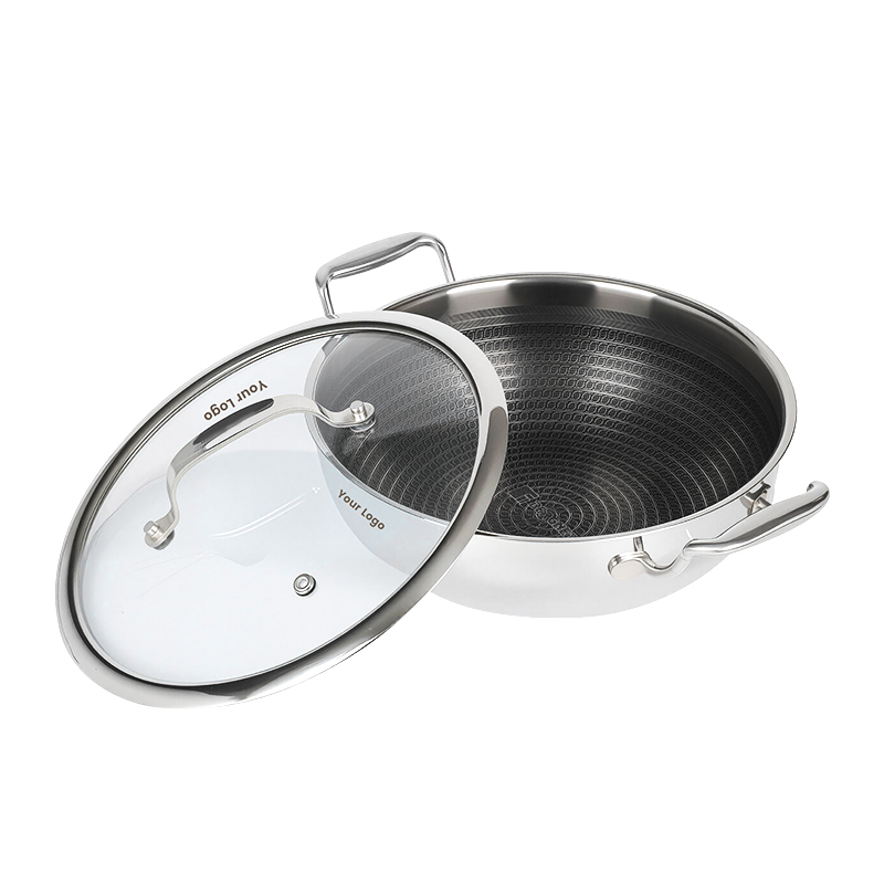 1. This 3-layer stainless steel Dutch oven is engineered for ideal cooking performance: its interior is finished with an etched honeycomb coating, which ensures consistent heat distribution throughout the cooking process. Additionally, the customer’s exclusive LOGO is printed on the inner base—with the same customization option available for the outer base.