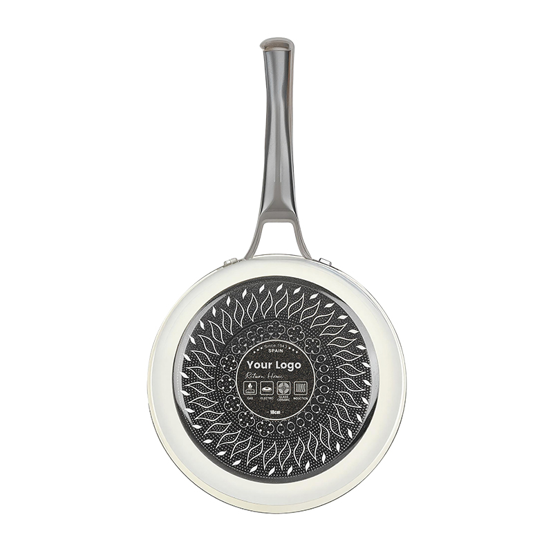 The outer base of this product can also be finished with an etched reticulated pattern, which greatly enhances thermal conductivity for more efficient and uniform heating during cooking. Moreover, the etched reticulated base design ensures the pan stays stable and prevents tipping during use. Both the inner and outer bases of this frying pan support exclusive custom LOGO printing, letting you prominently showcase your brand identity.